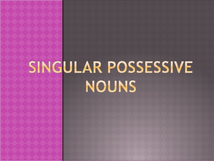 Rule To show the possessive form of singular nouns add 's. Examples: Fluffy Sally the man the teacher Fluffy’s tail Sally’s recipe the man’s hat the teacher’s pencil