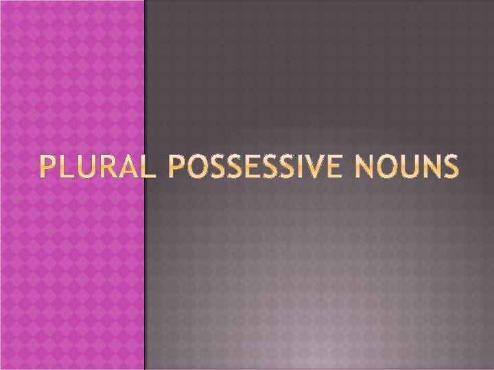Rules 1. To show possession of singular nouns add 's. 2. To show possession of plural nouns ending in s add an apostrophe ('). Examples: runners => runners' shoes cows => cows' meal trees => trees' apples
