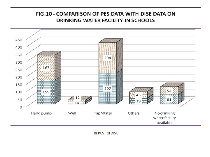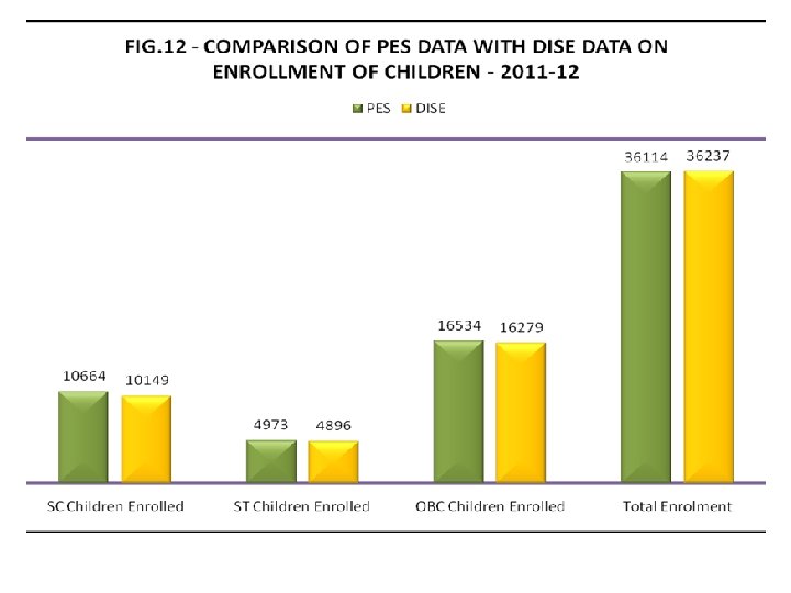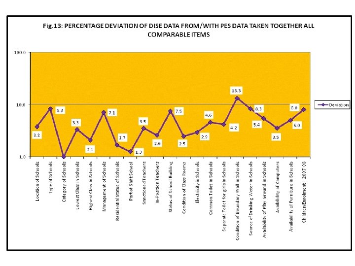 Conclusions • The overall deviation of DISE data from PES data, in respect of all comparable of items, is 7. 32%, which is within the range of permissible percentage of deviation i. e. 10%, and there by giving a precision level of 92. 68% for DISE data in relation to PES data • Within the available comparable data, few schools did not provide the information on some of the items. • The highest deviation of data is observed in respect of items which are based on respondent’s interpretation i. e. In Type of schools, status of school buildings, condition of boundary wall, management of schools, drinking water facility and children enrollment.