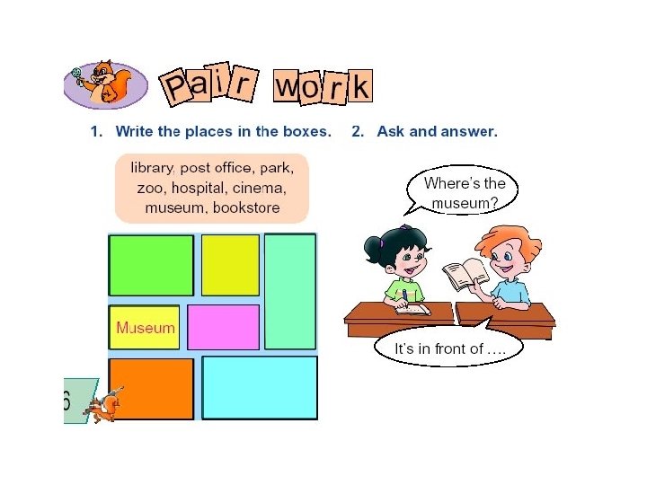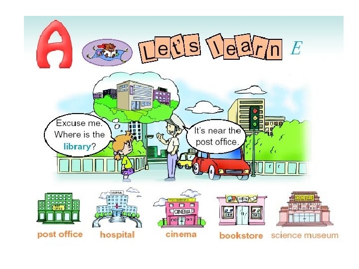 Let’s chant Where is the post office? Next to the hospital. Where is the hospital? Next to the cinema. Where is the cinema? Next to the bookstore. Where is the bookstore? Go straight ahead.