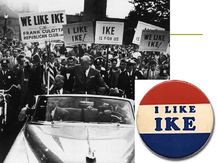 1952 Election Republicans: Eisenhower (“I like Ike”), R. Nixon as VP (fame: Alger Hiss case) p Democrats: Adlai Stevenson p Eisenhower pledged to go to Korea & end war p