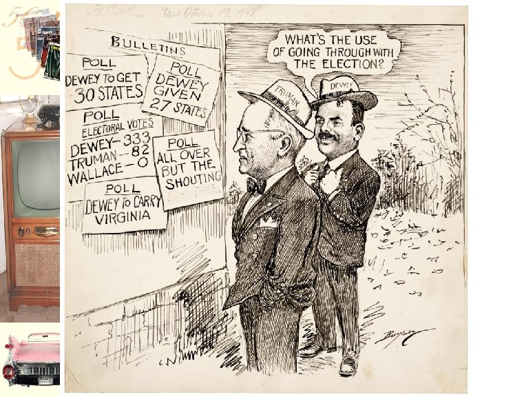 • 1948 Election - Democrats (Truman) re-elected - Dixiecrats (Strom Thurmond) - Republican (Thomas Dewey)