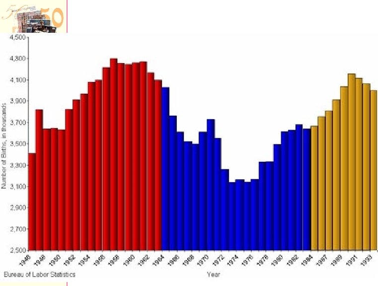 1. Baby Boom - People born between 1945 and 1960 -Why did this happen? Causes - Return of Soldiers - End of Depression Effects - Population Increase - Lack of housing
