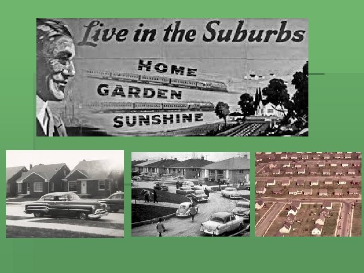 Economy of Georgia § As men returned from WWII they began to marry, buy a home, and start a family § Because of the G. I. bill, many of veterans will go to college and earn a degree. § Many of these veterans will move to the cities and start their jobs. § The increase in the number of houses needed for new families will result in the idea of suburbs. § Suburbs are neighborhoods found outside the city. § Suburbs, along with growth of jobs from war time industries such as the Bell Aircraft plant becoming Lockheed Martin will cause Georgia’s economy to boom and be diverse.