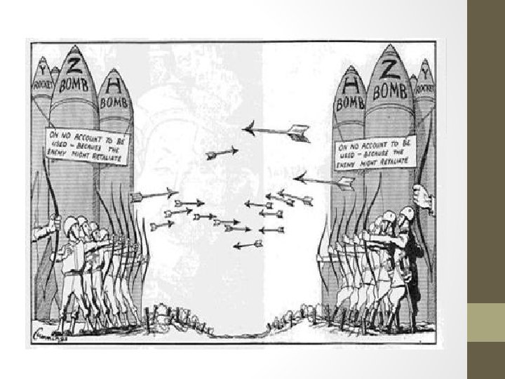 The Arms Race • Both the United States and the Soviet Union armed themselves, each preparing to withstand an attack from the other. • The United States had developed the atomic bomb during World War II; Soviet scientists developed their own in 1949. • For 40 years, the two superpowers spent great amounts of money to develop more and more powerful weapons. • The Arms Race raised the level of tension between the two superpowers. • It also raised fears among many people that the superpowers may become involved in a conflict that would destroy the world.