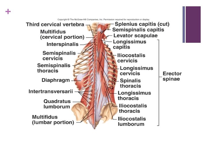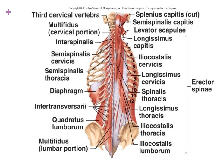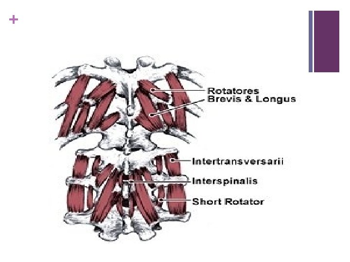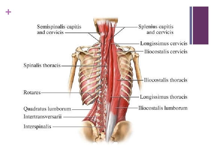 + Different goups of muscles of back n Superficial n Inter mediate n Spinotransversales n Erector spinae n Transversospinales n Segmental back muscles n Suboccipital muscles