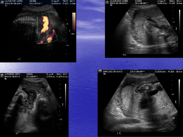 6/17/03 cont. • Pt sent for an ultrasound in Rocky Hill • Found to have oligohydramnios with a 3 cm pocket • Distended fetal bladder 4. 9 cm by 2. 9 cm • Bilateral hydronephosis • Pt sent to Labor and Delivery for complete evaluation