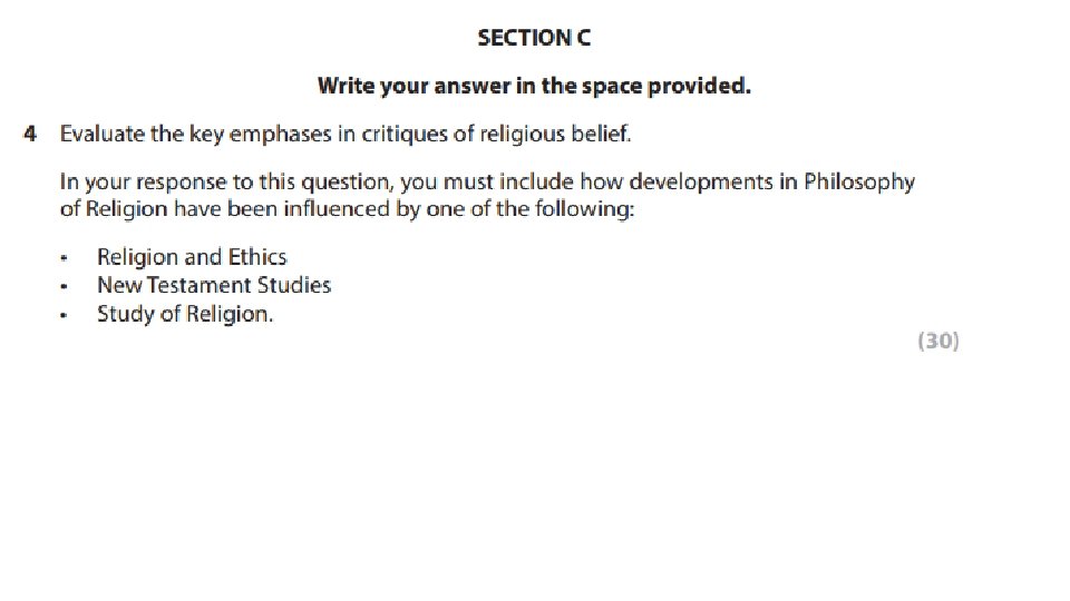 Assess the view that Postmodernism is a threat to religion. 12 marks Evaluate the view that Postmodernism is an affirmation of religion. (30 Marks). In your response to this question, you must include how developments in Philosophy of Religion have been influenced by one of the following: • Religion and Ethics. • New Testament Studies. • The study of Religion.