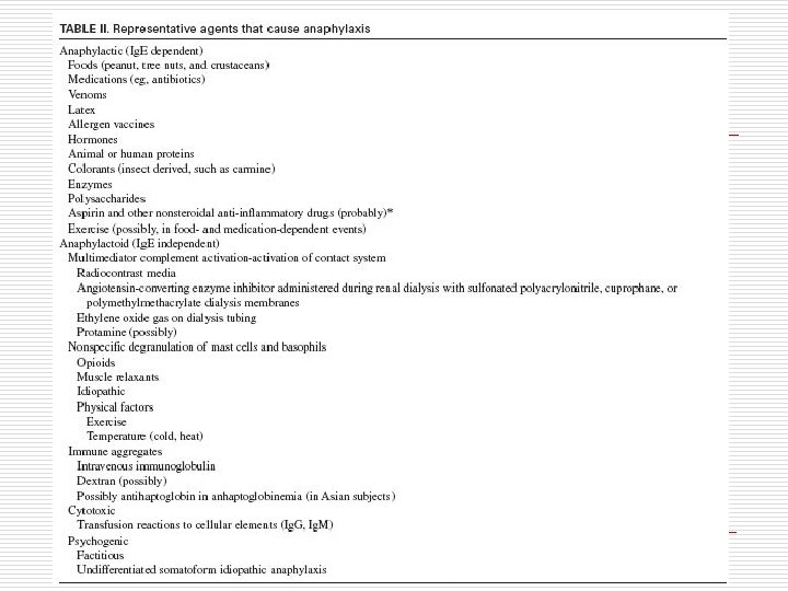 Reakcje anafilaktyczn e Ig. E Ig. G (przeciwciała homocytopowe ) Reakcje anafilaktoidalne Bezpośrednie uwalnianie mediatorów przez: leki pokarmy czynniki fizyczne (wysiłek, zimno) Agregacja kompleksów immunologicznych: reakcje na gammaglobuliny reakcje Ig. G anty-Ig. A Przetoczenie przeciwciał cytotoksycznych: krwinki czerwone leukocyty Kontrasty radiologiczne www. nexter. pl/al_wspolcz/art_lf. php? art=0007 Idiopatyczne