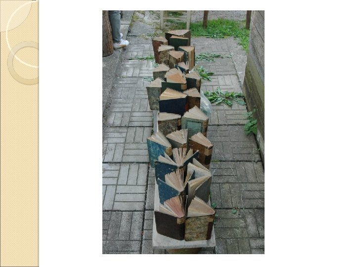 b) Sušenje vlažnih knjiga i knjiga sa lagano mokrim rubovima Postaviti knjige na “noge” i lagano raširiti listove poput lepeze - Knjige sa mekanim/oštećenim koricama poduprijeti podupiračima ili utezima - Ako je uvez vlažniji od bloka, staviti upijajući materijal između korica i knjižnog bloka - Kada knjiga bude gotovo u potpunosti suha, opteretiti ju utegom dok se ne osuši -