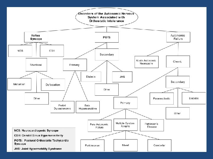 POTS: Systemic Syndrome • • • Esophagus – GERD, dysphagia Stomach – abnl gastric emptying Intestinal and sphincter - dysmotility CNS – migraines/HA, brain fog, anxiety, depres. Urinary tract - inability to empty the bladder Ocular – inability to accommodate Salivary glands – dry mouth Skin – flushing, rashes, swelling Extremities – pain, swelling, vasospasm Benarroch. Mayo Clin Proc 2012