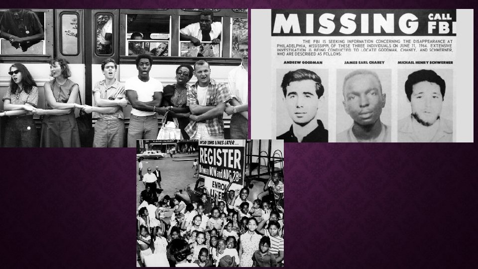 • The Struggle for Voting Rights • 24 th Amendment - prohibited blocking voting rights due to inability to pay a tax • “Freedom Summer” – push to register black voters • 3 volunteers from NY were killed by KKK • Black churches and homes bombed
