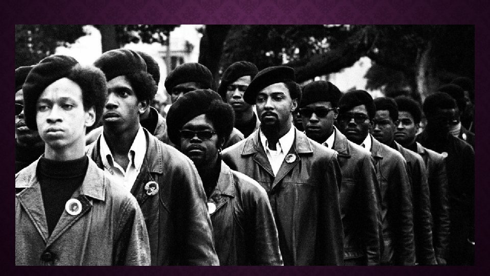 • Black Panthers • 1966, formed by Bobby Seale and Huey Newton • Militant • Originally formed to protect black neighborhoods from police violence • Provided social programs for black youth • Free breakfast program to feed poor black children • 10 point program • Demand for reparations