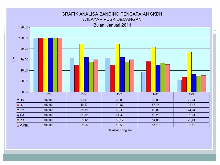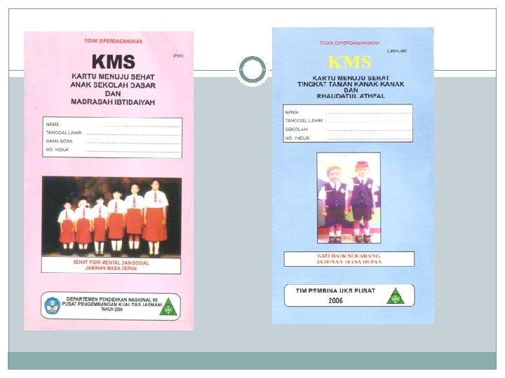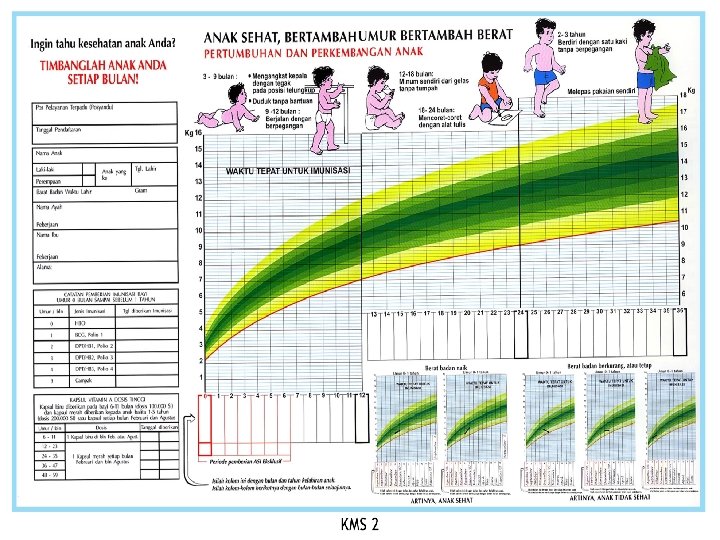 KMS (Kartu Menuju Sehat) Merupakan Reporting dan Recording SKDN: S : Jumlah Balita di wilayah Kerja K : : Luas cakupan kegiatan D: Tingkat Partisipasi Masyarakat N: Hasil Kegiatan N/S : Tingkat Pencapaian. Program N/S : 100 % ? S: Merah, K: Kuning, D: Hijau Muda, N: Biru
