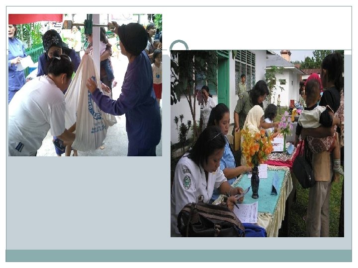 Cont. . . g. Semua bayi harus mendapatkan asi saja sampai 6 bln. h. Setiap ibu harus memonitoring pertumbuhan bayinya tiap bulan. i. Setiap anak umur o sampai 12 bln memperoleh imunisasi lengkap j. Setiap bayi 6 -12 bln memperoleh kapsul vitamin A 1 x dosis 100. 000 IU. Dan sirop Fe ½ sendok takar setiap hari berturut-turut selama 60 hari. Anak 1 -5 thn kapsul vitamin A dosis 200. 000 IU setiap 6 bulan dan sirop Fe 1 sendok takar setiap hari berturut-turut selama 60 hari.
