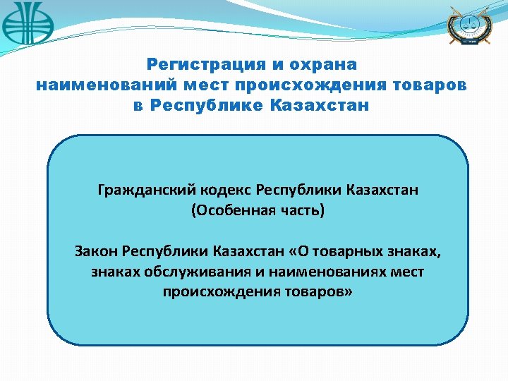 Registration and protection appellations of origin of goods in Republic of Kazakhstan Civil Code (Special Part) Law On Trademarks, Service Marks and Appellation of Origin