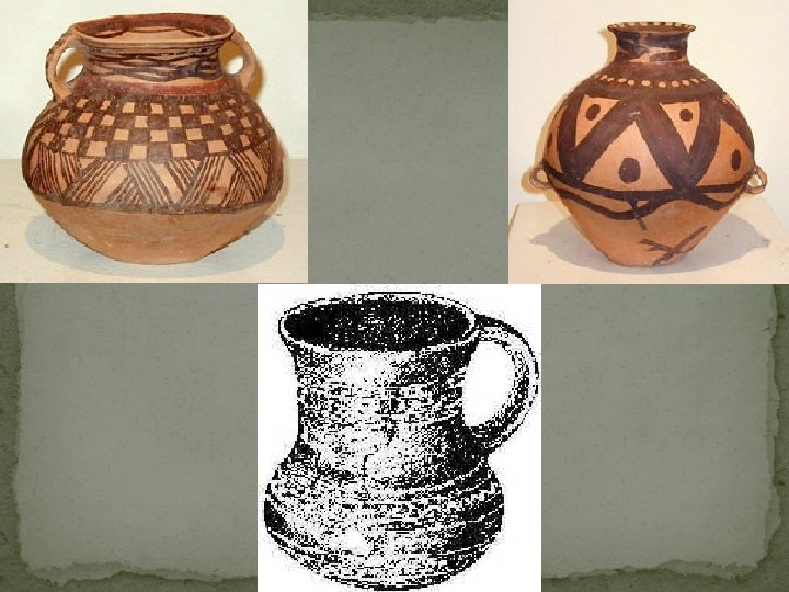 Zdobení neolitické keramiky �Nezdobená keramiky �Otisky do vlhké hmoty: lopatka, hřeben, srdcovka �Vypichování �Pásové zdobení; spirály a meandry �Malovaná keramika �Geometrické, abstraktní motivy; antropomorfní prvky