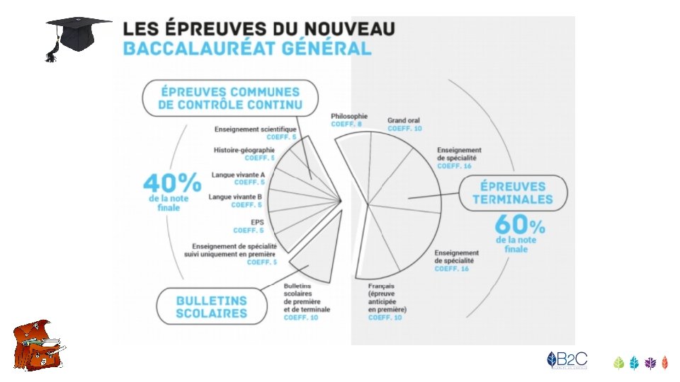 Les coefficients de maths au bac : très complexes ! Le nouveau baccalauréat prévu se décomposera en : • épreuves anticipées de français : 10 % • épreuves finales terminales (philosophie, « grand oral » , épreuves deux spécialités) : 50 % • épreuves communes de contrôle continu pour 6 matières : 30 % • moyenne générale arithmétique des bulletins de Première et Terminale : 10 % Soit : 60 % d’épreuves finales et 40 % de contrôle continu.