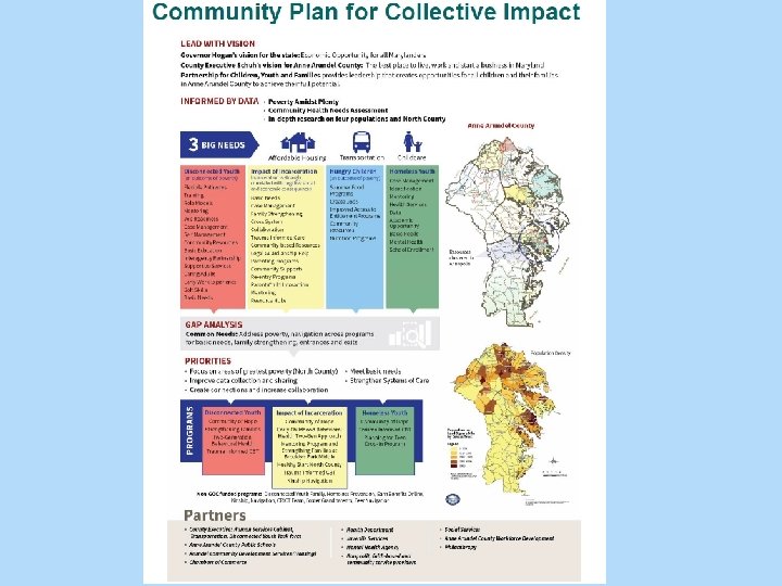 Youth Development Almost 127, 000 children under the age of 18 living in Anne Arundel County 21% (25, 569) are considered low income and 8%, or nearly 10, 000 children, are living below the Federal poverty level Academic achievement is higher than the state The number of youth with no high school diploma has decreased High school graduation numbers have increased. Achievement gaps related to race and income have shrunk a little BUT Only 43% of Anne Arundel County’s children enter kindergarten ready to learn Last year an average of 200 county children per month were abused or neglected Unemployment rate in the county for youth is 16. 9% or one in four youth. Soft skills are lacking