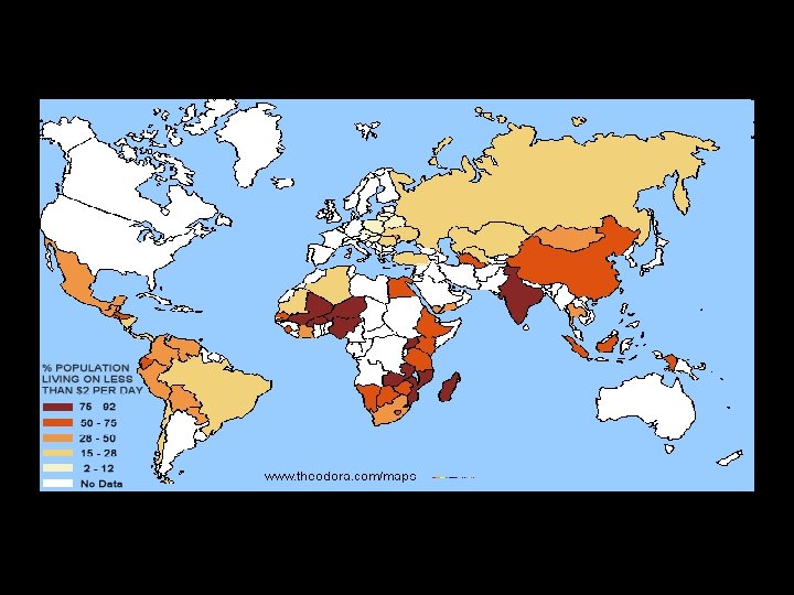 • • • Causes of Poverty Environment Geography Disease Historical factors Unemployment/Underemployment Lack of healthcare, education and infrastructure • Globalization