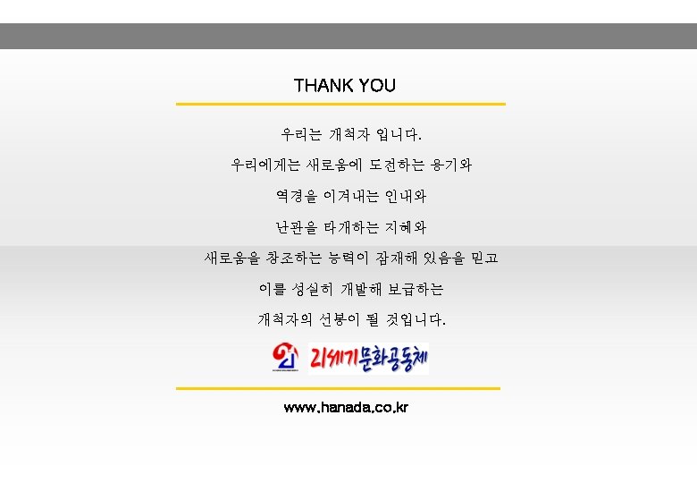 POWER POINT TEMPLATE Company's new low-cost and easy-to-use Web-site design tool will help entrepreneurs spiff up their online. 현장 리더 핵심 역량 강화 (Leader Core-Competency) (Good TO Great Leader) http: //www. hanada. co. kr 본원 : 부산광역시 사상구 감전동 152 -2번지 부산산업용재유통상가 7동 201호-203호 연구소: 부산광역시 사상구 감전동 152 -2번지 부산산업용재유통상가 B동 103/104호 Tel : 051. 314. 2144(代) Fax : 051. 314. 2143