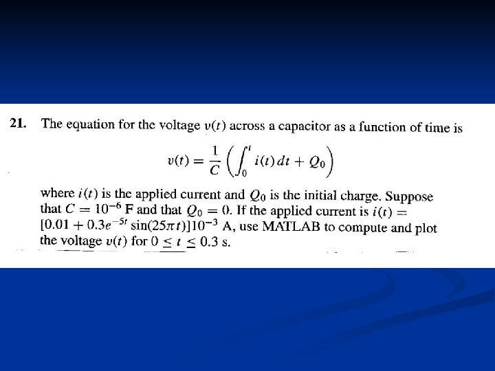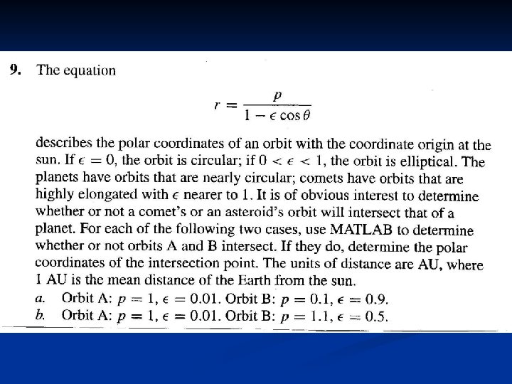 The following session gives an example for which no integral can be found. The indefinite integral exists, but the definite integral does not exist if the limits of integration include the singularity at x = 1. >>syms x >>int(1/(x-1)) ans = log(x-1) >>int(1/(x-1), 0, 2) ans = Na. N More? See pages 609 -611. 10 -39