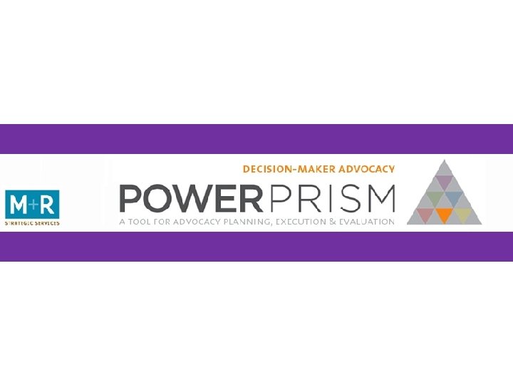 Power Prism® Strategies for Advocacy for Your Coalitions and for Engaging Youth Lori Fresina and Diane Pickles, M+R Strategic Services Laurie Jo Wallace and Brittany Chen, Health Resources in Action June 12, 2013