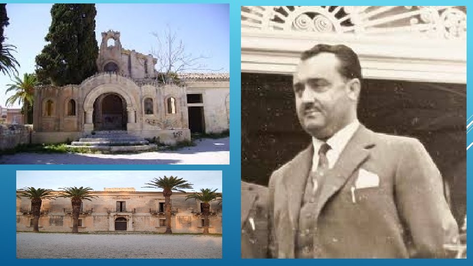 VILLA TEDESCHI DESCRIZIONE PARTE ESTERNA Il corpo centrale dell'edificio residenziale e` a pianta rettangolare e presenta una disposizione simmetrica degli spazi di un cortile esterno ampio, delimitato da mura di cinta confluenti in un alto cancello in ferro battuto che e` imperniato su due pilastri imponenti con delle semicolonne a capitello. Ai lati dei pilastri poggiano alti basamenti con rosoni centrali, delimitati dagli unici elementi rimasti di questa Villa (elementi zoomorfi e fitomorfi). Il suo impianto e` semplice e rigoroso basato su principi razionali Nell' androne superiore possiamo trovare lo stemma che riprende i riferimenti dei blasoni della famiglia Lorefice con il Leo LA SALA DEI FIORI Gli elementi decorativi di questa sala sono appunto i fiori; li ritroviamo sia nelle losanghe poligonali intorno e al centro della volta sia nella fascia decorativa. LA SALA DELLA MUSICA La stanza ripropone finti panneggi e ghirlande. Queste alleggeriscono le pareti in festoni raccolti da drappeggi che si articolano intorno ad una fascia orlata posta alla base della volta. Importante notare gli effetti pittorici angolari dove piccoli putti sono appoggiati a fioriere.