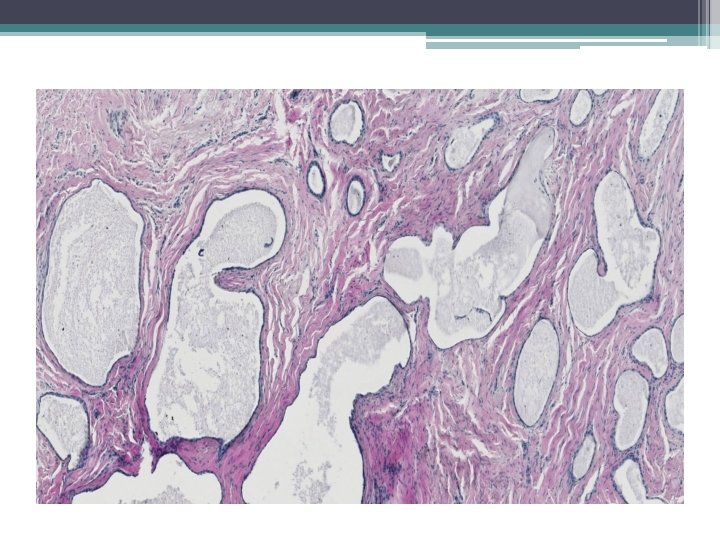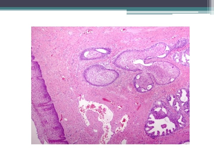 Ektopická prostatická tkáň • • vzácně lokalizace: cervix, vagína věk 21 -65 let mikroskopicky : tubuly a aciny některé papilární, některé kribriformní, s dlaždicovou metaplázií