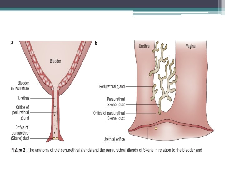 Skeneho žlázy • • glandulae vestibulares minores periuretrální žlázy součást zevních ženských pohlavních orgánů drobné tubulósní mucinósní žlázy, uložené vo vestibulum vaginae, které udržují vlhkost povrchu