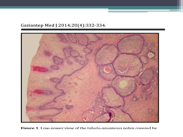 Tubuloskavamózní polyp • • • vzácně ženy 36 -83 let častěji postmenopauzální asymptomatický, náhodní nález velikost 1 -3 cm
