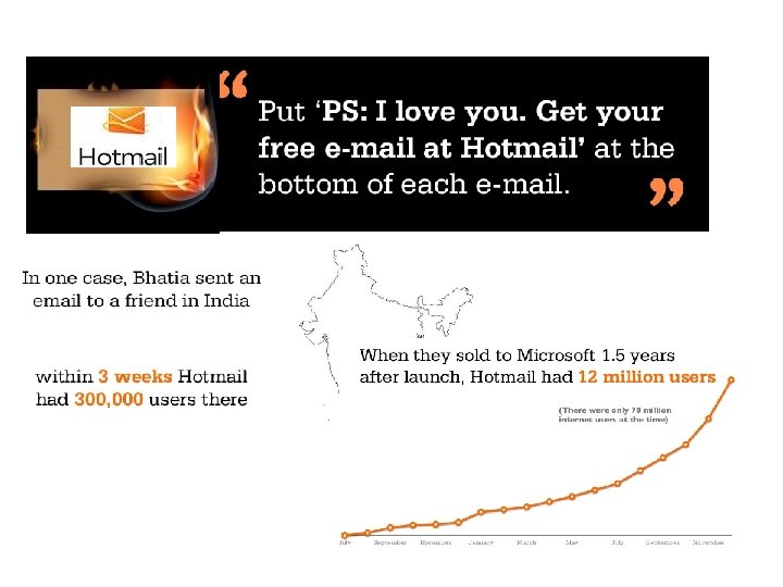 Growth Hacking examples • • • Hotmail – P. S. I love you Air. B&B – Made a Craigslist api. Drobbox – Refer a friend Facebook – Exclusive network appeal Twitter – follow celebrities Read more examples: http: //www. slideshare. net/matt angriffel/growth-hacking