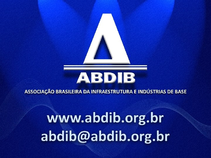 A ABDIB E A INFRAESTRUTURA FUNDADA EM 1955 EM SÃO PAULO MISSÃO: COLABORAR PARA A MELHORIA DO AMBIENTE DE NEGÓCIOS E PARA ATRAÇÃO DE INVESTIMENTOS DE TODOS OS PAÍSES PARCEIROS A DIRETORIA DA ABDIB É COMPOSTA PELOS PRESIDENTES E PRINCIPAIS DIRETORES DAS MAIORES EMPRESAS QUE INVESTEM OU FORNECEM BENS E SERVIÇOS PARA OS MERCADOS DE INFRAESTRUTURA E INDUSTRIA DE BASE
