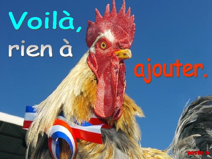 PPS manuel et musical France tu aimeras mme Slides: 39 Download presentation PPS manuel et musical. France tu aimeras, même si ton Président sera gaga. Pain à chaque repas, et le vin l ’accompagnera. Fier tu seras, et tête haute tu garderas. Au lit tu ne te louperas pas, car notre réputation en dépendra. Chier tu les enverras, car le mouton ce n’est pas toi. Jamais tu ne te tairas, car grande gueule tu auras. Au mondial tu iras, et coupe tu remporteras. Clowns tu expulseras car en France il y a des lois. Héros tu applaudiras, jamais tu n’oublieras. Concentré tu seras, et victoires tu auras. Livre d’histoire tu protégeras, et à tes enfants tu le donneras. Tolérant tu seras, mais limites tu auras. Femmes de France tu aimeras, car plus belles tu ne trouveras pas. Crèche tu feras, même dans les écoles elle vivra. Beau village tu auras et ton église fera foi. France tu respecteras, ou baigne tu te prendras. Sourire tu garderas et une belle vie tu auras. Chansons françaises tu chanteras et Molière t’écoutera. 14 juillet tu respecteras sinon des gifles tu prendras. Parfois tu te plieras, mais jamais tu ne tomberas. Le saucisson était là avant toi, et il sera là après toi. A chaque régions ses traditions. A midi tu t’arrêteras, car l ’apéro n ’attendra pas. Petite place tu garderas, quand le fromage arrivera. Nostalgie tu auras, quand deux chevaux tu verras. Fier tu seras, quand de France tu parleras. Belle vie tu auras dans la région que tu choisiras. Rouge, blanc ou rosé, le vin restera sacré. Peur tu vaincras, car couilles tu auras. Français tu seras, rebelle tu resteras.