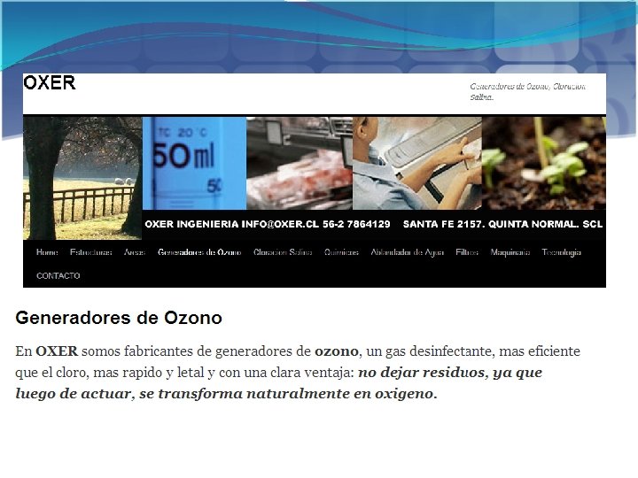 Alternativa: Sanitización mediante cloro Con Ozono (O 3) Con Cloro ( Cl) • Ser humano lo produce de forma natural. • Potente Cancerígeno. • 3000 veces más rápido en purificar. • Requiere almacenamiento. • No requiere almacenamiento. • Modifica levemente el Ph de la verdura. • Mantiene el Ph neutro de la fruta o verdura. • No deja sabor ni olor. • 1. 5 veces más fuerte que el cloro. fruta • Deja sabor y olor. • Deja residuos. • Completamente efectivo para la E. Coli. • Limitaciones en la eliminación de bacterias en la superficie de la fruta o verdura. • Aumenta la vida del producto en 1 a 2 hr por día. • NO ataca eficientemente la E. Coli. • Destruye el gas etileno (Maduración del producto)