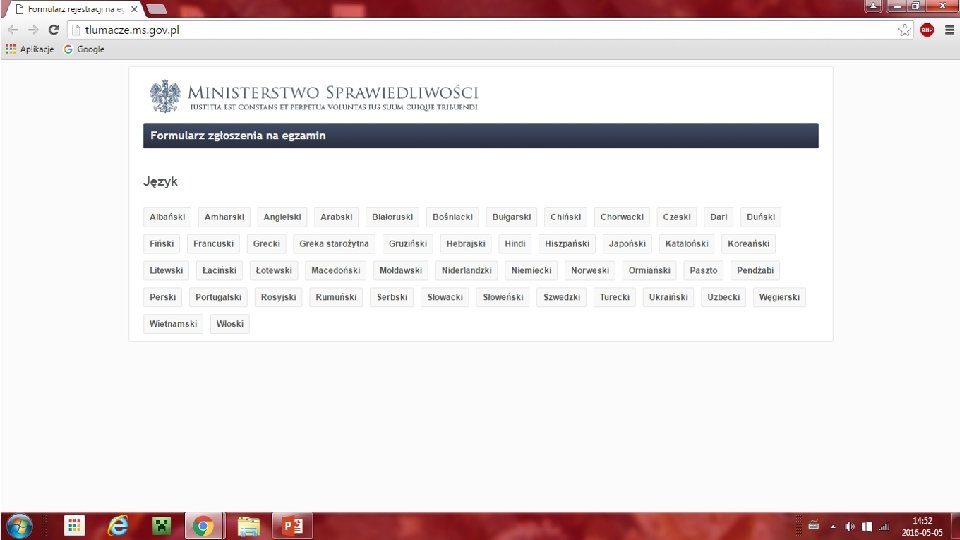 Gdzie można zapisać się na egzamin na tłumacza przysięgłego? Zamiar przystąpienia do egzaminu na tłumacza przysięgłego należy zgłaszać pisemnie na poniższy adres: Ministerstwo Sprawiedliwości Departament Organizacyjny Al. Ujazdowskie 11 00 -950 Warszawa skr. poczt. 33 Przewodniczący Komisji powiadamia kandydata na tłumacza przysięgłego o terminie i miejscu egzaminu nie później niż na 21 dni przed dniem egzaminu.
