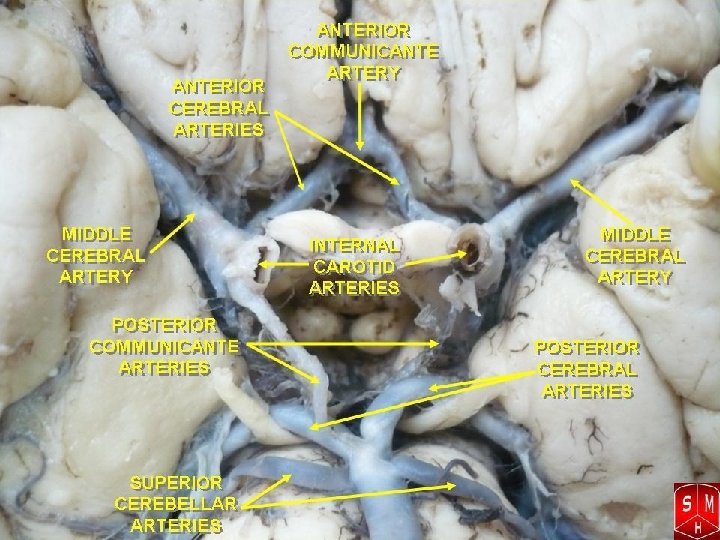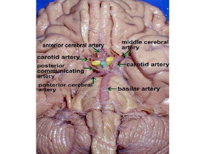 ICA Post cerebral artery Sup Cerebellar A Basilar A Ant inf cerebellar A Post inf cerebellar A Ant spinal A Middle cerebral artery Vertebral artery
