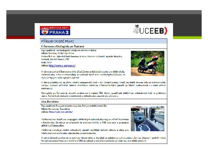 Memorandum Prahy 3 & ČEZ Praha 3 podporuje elektromobilitu spolupracujeme s ČEZ, který má odborné know-how v této oblasti dnes finalizujeme místa pro první dobíjecí stanice pro elektromobily téměř nulové náklady pro městskou část