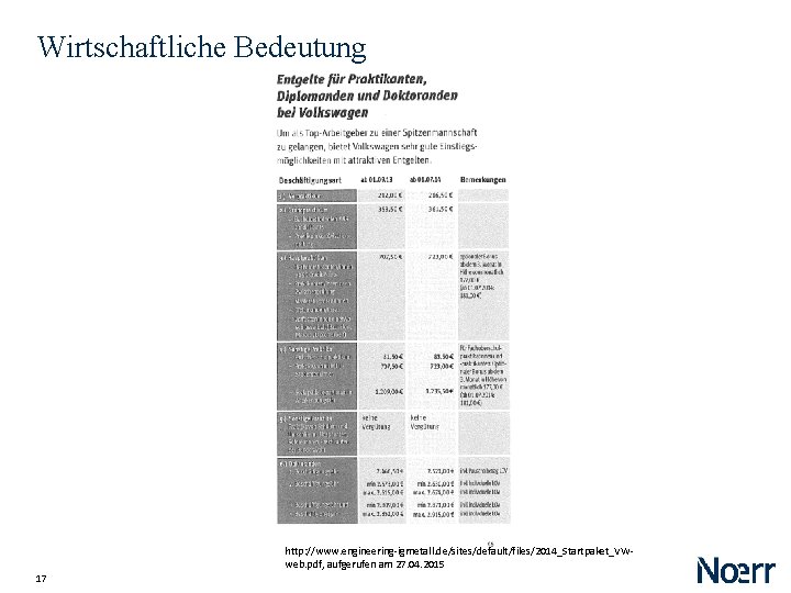 Wirtschaftliche Bedeutung http: //www. engineering-igmetall. de/sites/default/files/2014_Startpaket_VWweb. pdf, aufgerufen am 27. 04. 2015 17