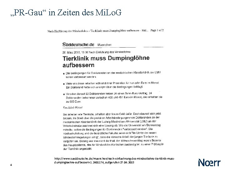 „PR-Gau“ in Zeiten des Mi. Lo. G http: //www. sueddeutsche. de/muenchen/nach-einfuehrung-des-mindestlohns-tierklinik-mussdumpingloehne-aufbessern-1. 2401174, aufgerufen 27. 04. 2015 5