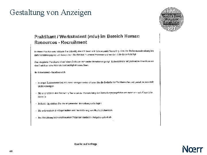 Gestaltung von Anzeigen Quelle: auf Anfrage 46