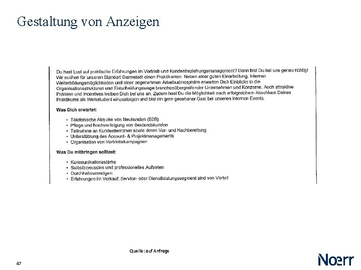 Gestaltung von Anzeigen Quelle: auf Anfrage 47