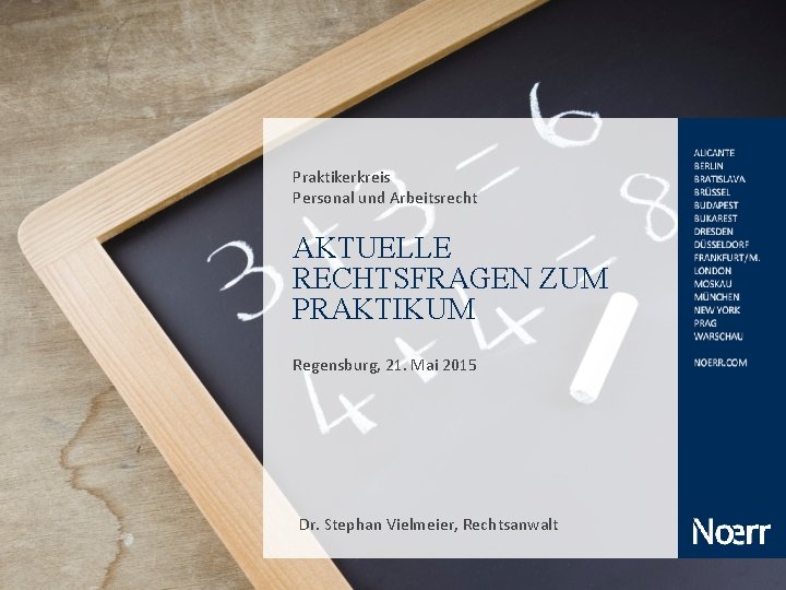 Praktikerkreis Personal und Arbeitsrecht AKTUELLE RECHTSFRAGEN ZUM PRAKTIKUM Regensburg, 21. Mai 2015 Dr. Stephan Vielmeier, Rechtsanwalt