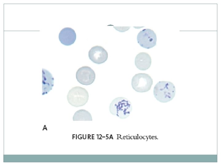 Pemeriksaan Retikulosit Prinsip : Retikulosit adalah eritrosit muda yg tidak berinti dan di dalam sitoplasmanya masih terdapat sisa ribosom dan RNA. Sisa ribosom dan RNA dapat dilihat dgn pewarnaan new methylene blue dan brilliant cresyl blue.