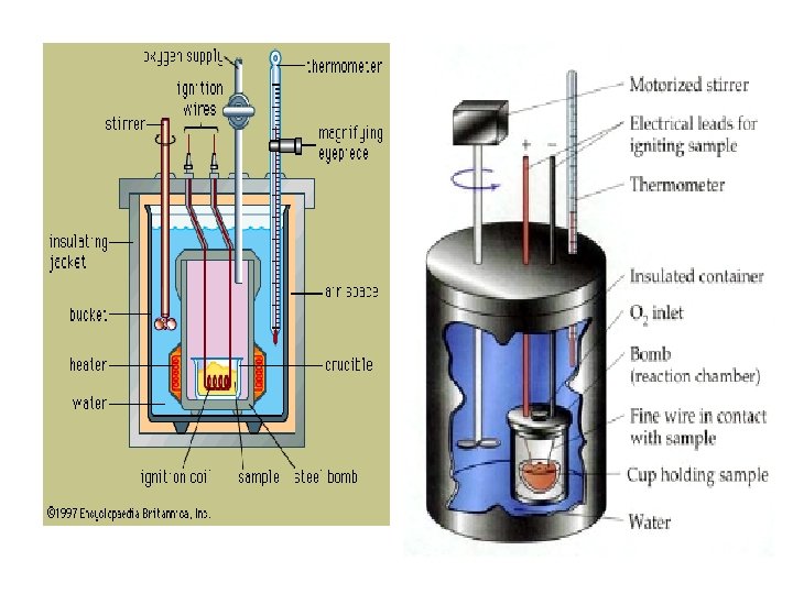 Perubahan energi pada berbagai keadaan -Perubahan energi pada volum konstan d. V = 0 atau U = q. V Terjadi pada kalorimeter bom -Perubahan energi pada tekanan konstan d. P = 0 U 2 – U 1= qp – p(V 2 – V 1) (U 2+PV 2) - (U 1+PV 1) = qp H 2 H 1 = q p H = qp