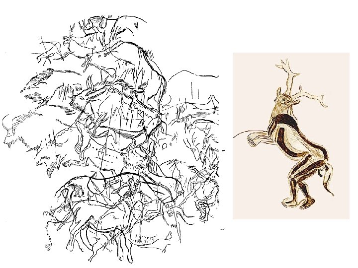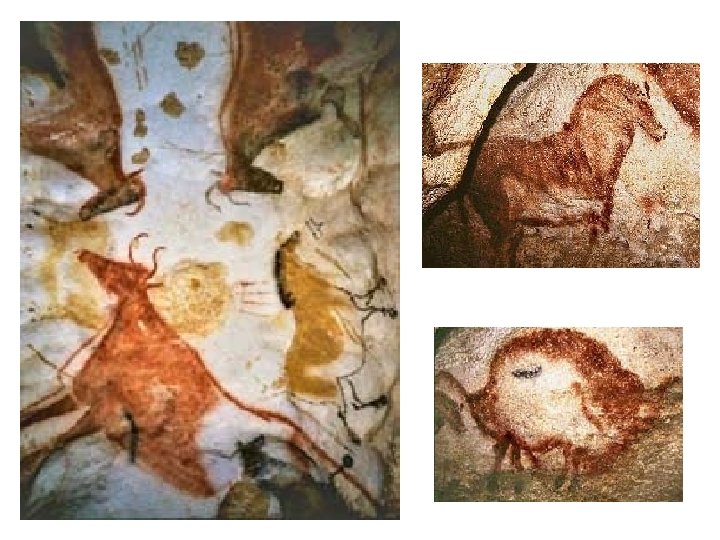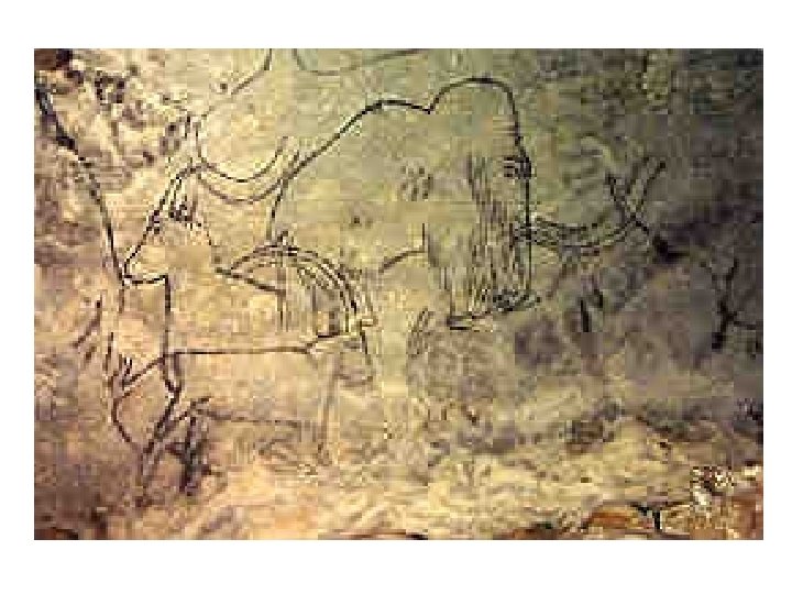 Zvěrné umění mladšího paleolitu • náčrty profilu zvířete; křivka hřbetu, rohy, nohy • lineární obrazy zvířat • inspirace. prostředí lovu • jeskynní malby • účel? • kůň, bizon, kozoroh, jelen, mamut, sob, jeskynní medvěd, nosorožec