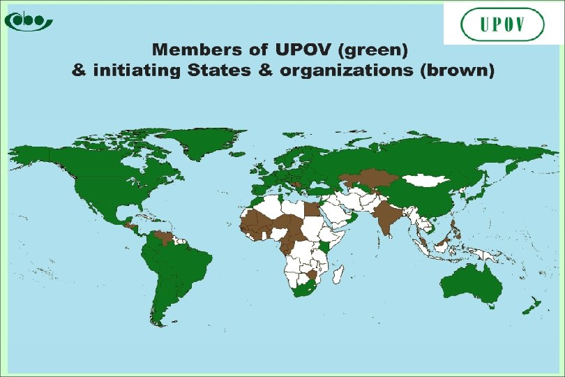 Konwencja UPOV Ø Międzynarodowa Konwencja o Ochronie Nowych Odmian Roślin – Konwencja UPOV ü ü ü Ø podpisana 2 grudnia 1961 r. w Paryżu zrewidowana w Genewie: 10. 11. 1972 r. , 23. 10. 1978 r. , 19. 03. 1991 r. powołała Międzynarodowy Związek Ochrony Nowych Odmian Roślin, lin w skrócie UPOV, UPOV z siedzibą w Genewie (73 MS) członkostwo PL od 11. 1989 r. (po podpisaniu Aktu 1978) przystąpienie PL do Aktu 1991 – 15. 08. 2003 r. (jako 24 państwo) Ustawy państw członkowskich UPOV, implementujące Konwencję, w Polsce „Ustawa o ochronie prawnej odmian”, z 26 czerwca 2003 (uopr)