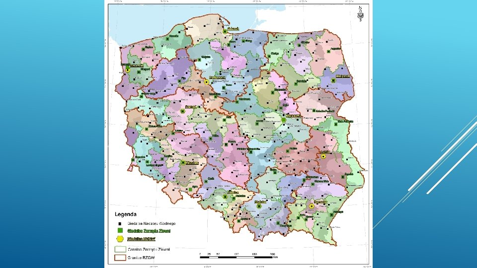 PAŃSTWOWE GOSPODARSTWO WODNE Struktura: WODY POLSKIE PGW Wody Polskie 11 Regionalnych Zarządów Gospodarki Wodnej - Białystok - Bydgoszcz - Gliwice - Gdańsk - Lublin - Kraków - Poznań - Rzeszów - Szczecin - Warszawa - Poznań 50 Zarządów zlewni 330 Nadzorów wodnych