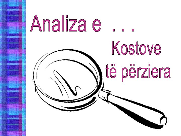 . . . KOSTOT E PËRZIERA (MIKSE) Kosto totale Grafiku i shpenzimeve totale mikse € 45, 000 € 40, 000 € 35, 000 € 30, 000 € 25, 000 € 20, 000 € 15, 000 € 10, 000 € 5, 000 Kostot e përziera ndonjëherë quhen gjysmë variabile apo gjysmë fikse Kostot e përziera zakonisht ndahen në komponentë të tyre fikse dhe variabile për analiza menaxheriale 0 10 20 30 40 Orët totale të makinës (000)