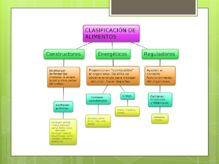 Actividad 4. Clasificación de los Alimentos. Se explica a los alumnos los diferentes tipos de alimentos que existen, se clasifican y se enseñan sus funciones.
